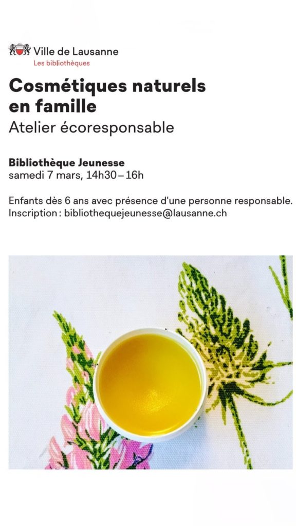 Cosmétiques naturels en famille, Atelier écoresponsable – Bibliothèque Jeunesse Lausanne